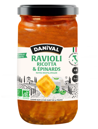 Généreux en farce, les ravioli DANIVAL sont agrémentés de sauces gourmandes, saines et sans sucres ajoutés**.